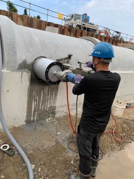 福岡市箱崎 コア穿孔 400Φ 福岡県福岡市東区箱崎にてヒューム管へのコア抜きを行いました。穿孔の大きさは400Φで厚みは100mmでした。 福岡県北九州市八幡西区の有限会社今住は、【アスファルト・コンクリートカッター切断】【コア抜き工事】のプロです。 ご希望の方は、お気軽にお問い合わせ下さい。