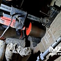 地下に設置してある足場の上での作業でしたので道具の運搬や作業場所の狭さ等でやりにくい現場でしたがΦ200のコア抜きを10箇所行いました。